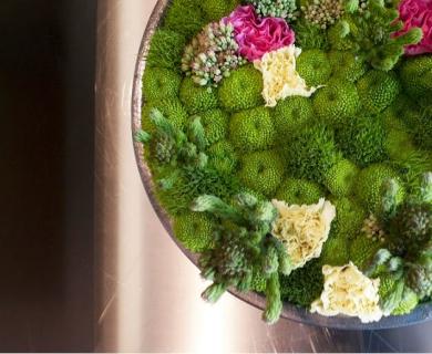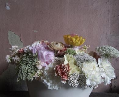 For an arrangement, do something simple, with beautiful flowers, sometimes with a