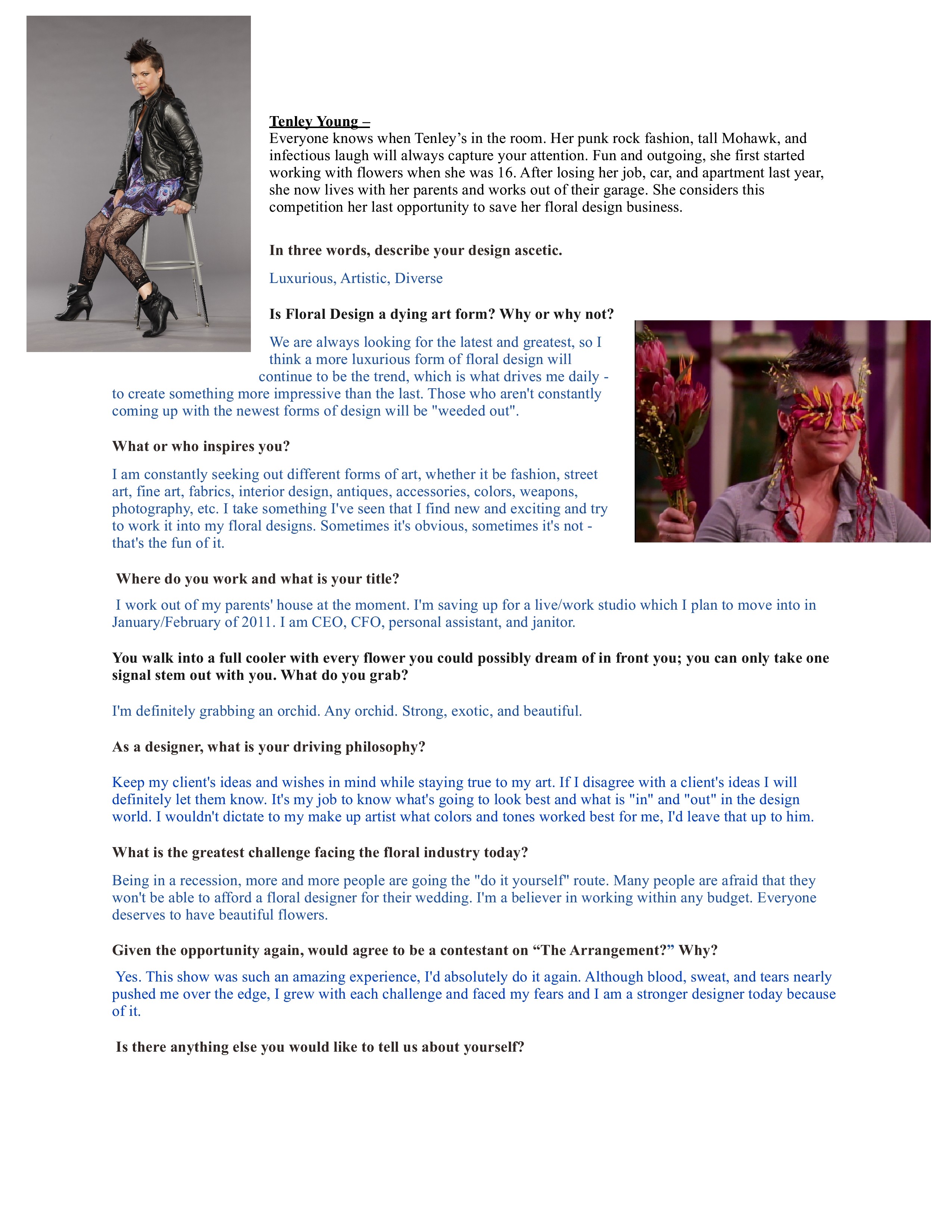 Special thanks to Chuck Graham of Blume Haus Floral Design for the interview.